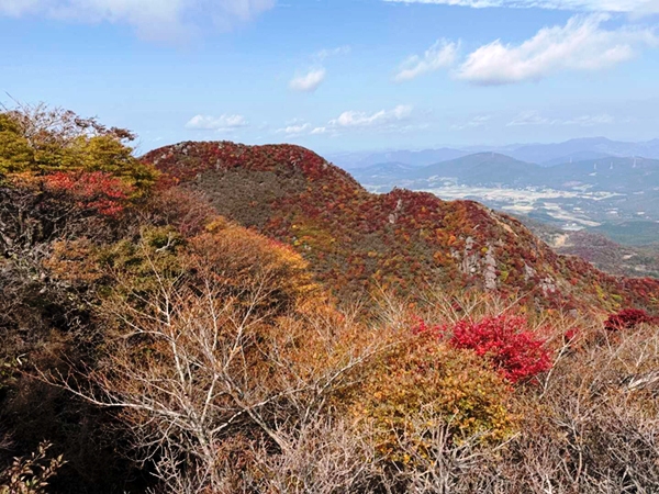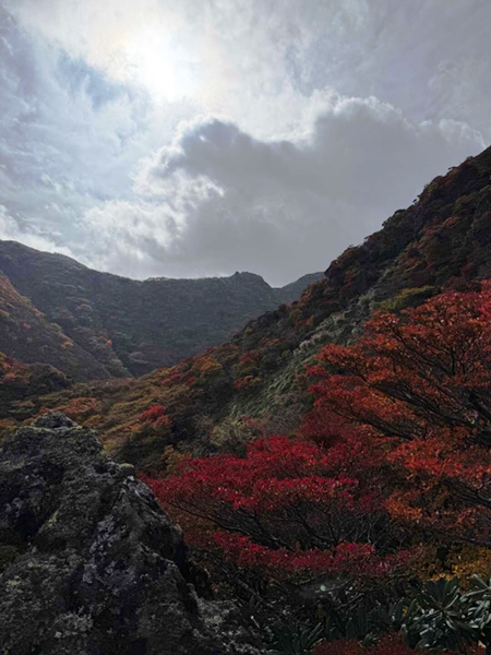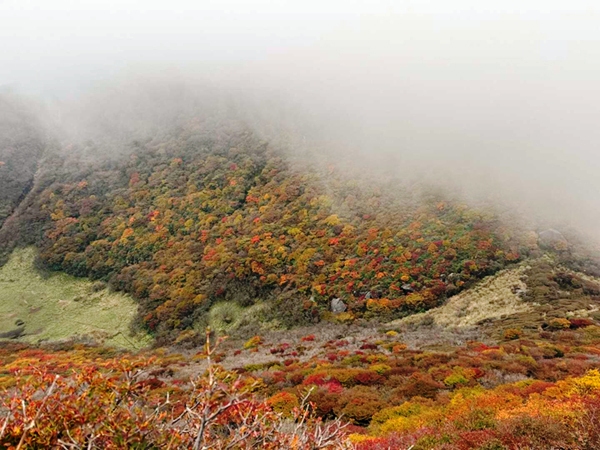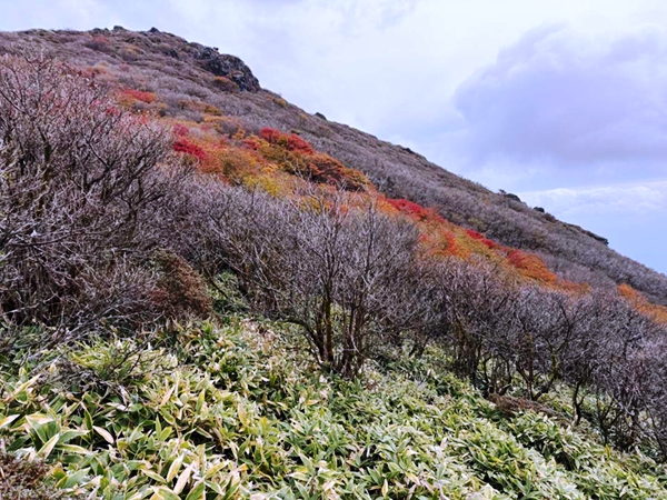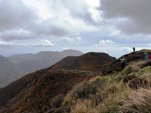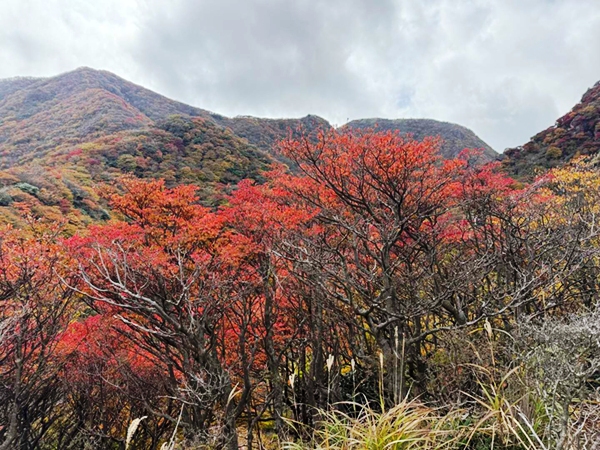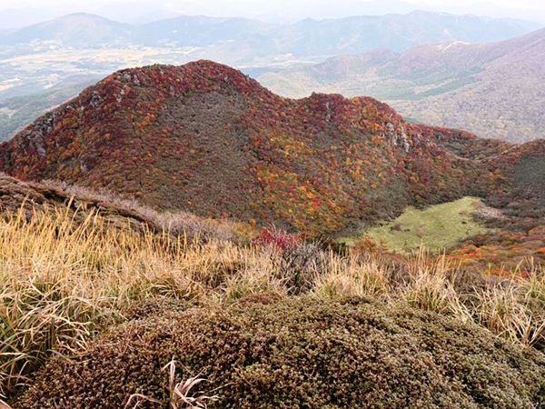 今年の紅葉シーズンは例年より少し遅くなっていて、ようやく見頃を迎えた日曜日とあって、くじゅう連山の登山口付近の駐車場はどちらも満車でした。