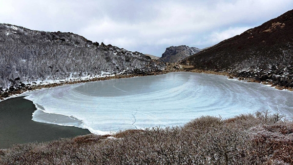 今年も御池の氷渡りを楽しめました。 くじゅうの自然に感謝です。