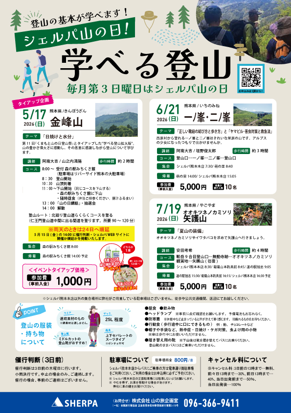 たくさんの方に登山を楽しんでいただけるように、この「シェルパ山の日」に学べる登山を開催します!