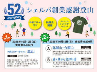 TOP | お知らせ | イベント 2025/09/30 イベント 九州百命山!デジタルスタンプラリー登山バスツアー開催! 2025/09/29 イベント 夕暮れ ハイキングクエスト@神園山・小山山【くまもと花博2025】 2025/09/29 イベント 6座で開催!九州百命山 デジタルスタンプラリー 2025/09/29 イベント 嬉しい特典つき!初心者におススメのスペシャル登山ツアー〈12月・1月〉 2025/09/01 イベント MISUMI WEST PORT FES-ACTIVE & GRILL-2025 2025/08/30 イベント 2025シェルパ創業感謝登山 2025/08/21 イベント 登山バスでめぐる、秋のくじゅう連山モニターツアー参加者募集! 2025/08/08 イベント 嬉しい特典つき!初心者におススメのスペシャル登山ツアー〈10月・11月〉 2025/06/27 イベント 肝属山地のダルマエビネとヘツカコナスビ等 2025/05/21 イベント 【松本駅現地集合】シェルパスタッフと行く!紅葉の涸沢ハイク 12…22