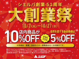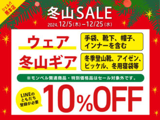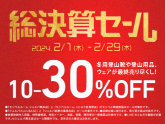 TOP | お知らせ | キャンペーン・セール 2024/12/03 キャンペーン・セール 【熊本店】冬山セールを開催!ウェア・冬山ギアが10%OFF! 2024/09/30 キャンペーン・セール シェルパ創業51周年 大創業祭 2024/09/11 キャンペーン・セール 【熊本本店限定】秋のテント泊デビュー応援キャンペーン! 2024/09/09 キャンペーン・セール 【シェルパ アミュプラザくまもと店限定】オープン2周年記念‼ 2024/07/31 キャンペーン・セール 【熊本本店限定】夏物クリアランスSALE! 2024/04/03 キャンペーン・セール どんとこい春山SALE! 2024/01/25 キャンペーン・セール 総決算セール開催! 2023/12/29 キャンペーン・セール 初売りセール!店内商品が10%OFF! 2023/12/01 キャンペーン・セール 冬山セールを開催!店内商品が10%OFF!ザックは更にお得です! 2023/11/05 キャンペーン・セール 秋のウェアキャンペーン!ウェアを含む2点以上のお買い上げで、ご購入のウェアが10%off! 123…7