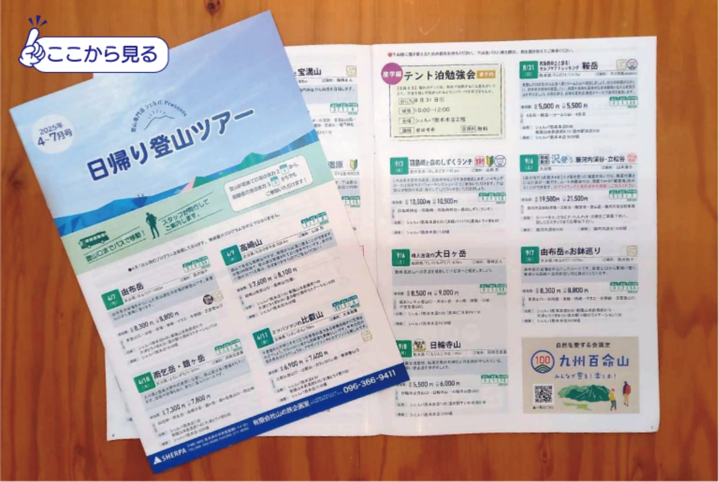 ※当日プログラム以外のお問い合せは、通常営業時間に山の旅企画室(096-366-9411)へご連絡ください。