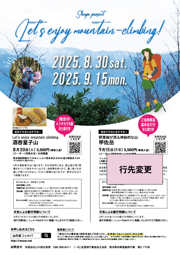 ■9月15日甲佐岳ツアーの行き先変更について■