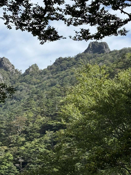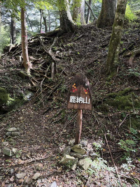 鹿納谷からいきなりの急登を分岐まで登り、木々の間からようやく目指す鹿納坊主が見えてきました。
