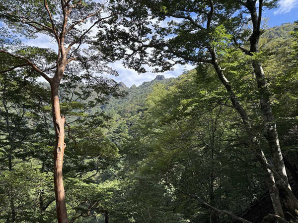 鹿納山(1567m)は宮崎県南部、大崩山の北西に位置する山で、「鹿納坊主」の呼び名で親しまれている山です。