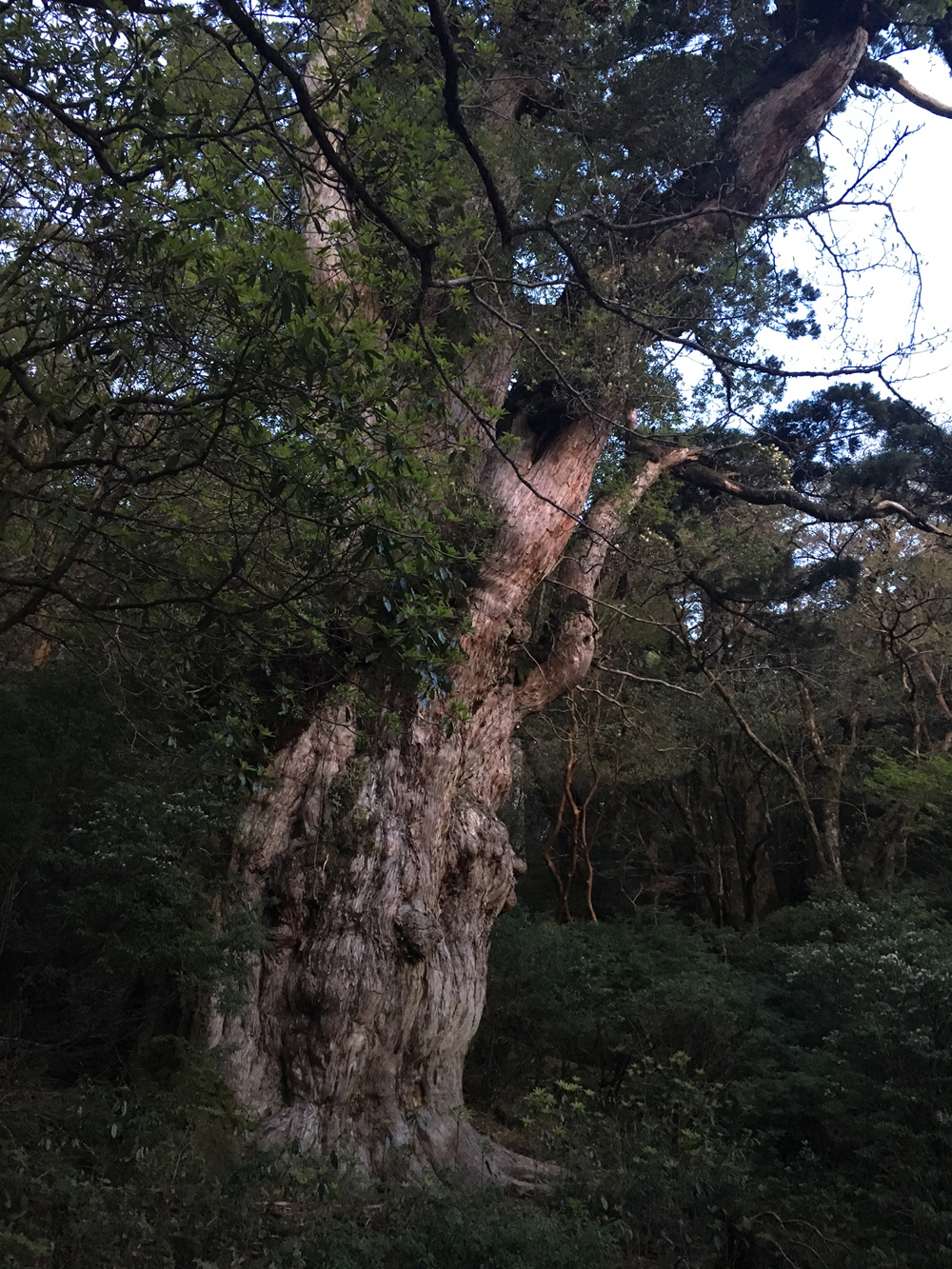 ちなみに、杉の寿命は一般的に500年程と言われていますが、屋久島は花崗岩(かこうがん)という養分の少ない岩質で出来ており、そのため非常に成長が遅いのです。雨の多い島で多くの水を浴び時間をかけてゆっくりと成長する為、屋久杉の寿命は数千年にもなると言われています。