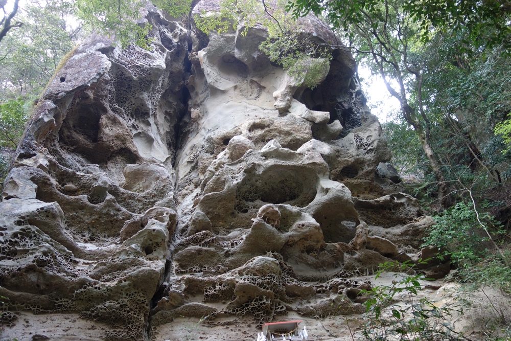 ぼろぼろと崩れるという意味から「ボロイシヤマ」と呼ばれる山であり、ご神体である「針ノ耳神社」という場所周辺に存在する奇岩の数々がとても印象的です。また、かつては宮崎市のクライマーのメッカでもあった「象の墓場」と呼ばれる岩壁に囲まれた空間、磨崖仏の掘られた「奥の院」と呼ばれる神秘的な祠と低山ながらに見所を多く持つ山です。