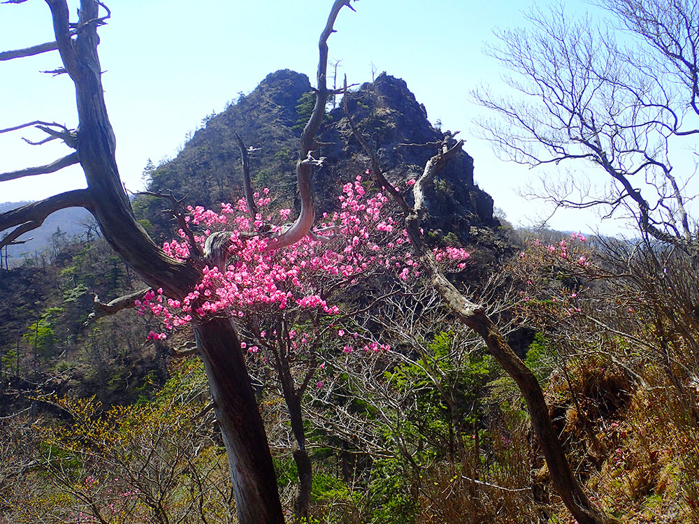 宮崎県北部の春を代表する花の一つに上げられるのが、アケボノツツジです。ピンク色の大きな花びらを付かせ山のあちらこちらに咲き乱れますが鹿納山で見るアケボノツツジは一味違います!岩と花の共演は、すばらしい景観を作り出します。